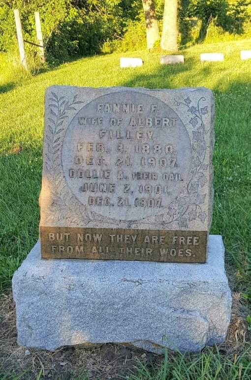 Before she collapsed from a massive head wound, she relayed that her brother-in-law, Albert Filley, had beaten her, shot and killed her husband Clay Filley (his own brother), and beaten to death his wife, Fannie, and his own six-year old daughter, Dolly with a hammer.